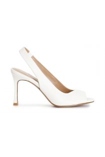Elegant leather slingback sandal with elastic lace on the back. lining and comfortable insole are in leather. 8.5 cm high heel with tapered shape. a timeless classic that cannot be missing from your wardrobe.