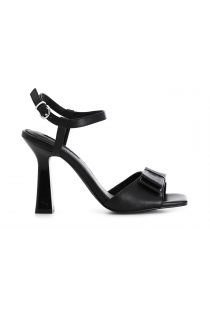 Leather sandals with bow. leather insole. adjustable ankle strap. 100 mm-high heel.