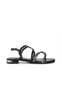 leather sandals with crossed upper and heat-sealed rhinestones black
