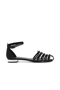 Leather cage sandals with a back reinforced heel and mignon rhinestones. ankle strap.