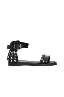 Leather sandals with rear straps, crossover and studs, leather covered welt.