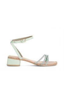 Leather sandals with rhinestone mignon heel h. 35mm.