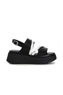 leather sandals with two-colour wedge black/silver