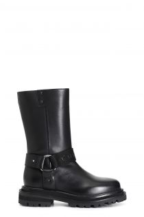 Women's leather ankle boot with removable ankle strap embellished with a distinctive black cafènoir logo ribbon and trendy studs. the insole is leather.