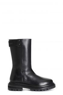 Women's leather ankle boot embellished with a distinctive black cafènoir logo ribbon and trendy studs. the insole is leather.