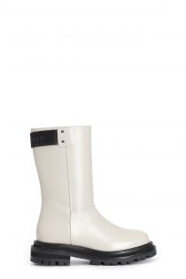Women's leather ankle boot embellished with a distinctive black cafènoir logo ribbon and trendy studs. the insole is leather.