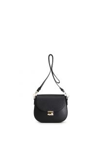 leather shoulder bag with flap and rhinestone closure black