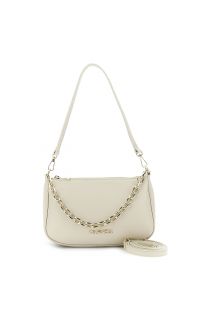 leather shoulder bag with gold chain handle cream