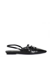 Leather slingback with multi-buckle straps on the front. elasticated lace on the back. slim shape with 1.5 cm heel. fashionable comfortable and adding a trendy touch to your look this shoe is a must-have for the season.