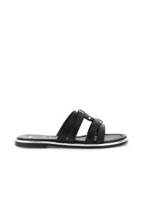 leather slipper sandals with enameled accessory black