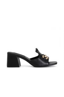 Leather slippers with gold accessory. leather insole. 50 mm-high heel.