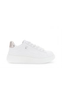 White leather sneakers with wave stitching and a laminated heel. Fabric lining, leather insole, and 4 cm platform sole. Comfort and glamorous style all day long.