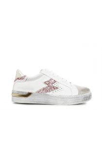 Leather sneakers with vintage effect sole. the leather upper is enriched with fabric inserts with glitter or animal details depending on the colour variant