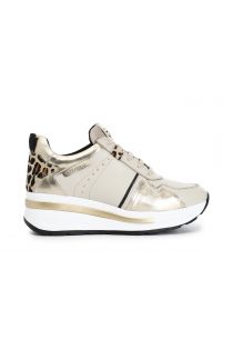 leather sneakers with pony hair and laminated inserts beige/platinum