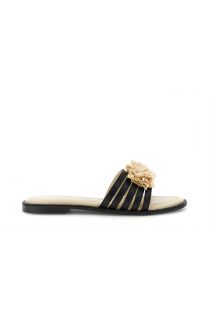 Slipper-style sandals with leather straps. a refined raffia accessory. leather lining and insole 1.5 cm heel. comfortable bright and perfect for elegant summer looks with a natural touch.