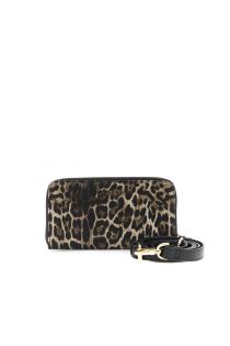 Leopard print leather-effect wallet with internal zip closure, card holder and zipped partition, external mobile phone pocket and removable shoulder strap.