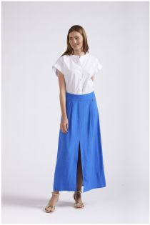 Long skirt with front slit made of linen-blend fabric. side zip fastening. simple elegant modern it brings sophistication to your everyday wardrobe.