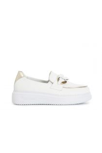 Sporty loafers enriched with gold details and a sophisticated chain accessory. leather upper and insole. box sole.
