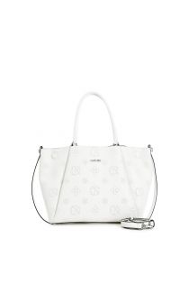 logoed faux leather shopping bag with twist handle white