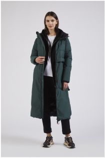 A long down jacket with prominent side zips that give this garment a young and bold look.