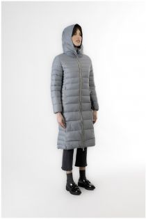 Long down jacket with enveloping collar made of ultraligth nylon. enveloping and warm collar. double slider zip closure. zip on the side to facilitate movement. classic and versatile garment perfect for cold winter days.