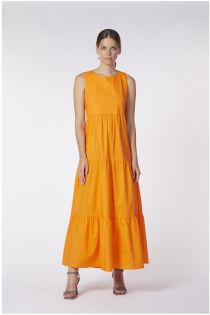 long dress with gathered flounces orange