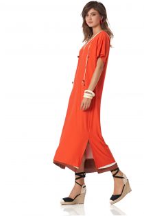 LONG DRESS WITH DOUBLE FLOUNCE SLEEVES AND BEADS