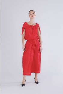 Women's long dress with a front slit and elastic waist ideal for summer. the wide armholes create an elegant drape on the shoulders enhancing the silhouette with lightness and fluid style. the model is 175 cm tall and is wearing size s. fit: comfort.