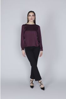 long sleeve satin blouse aubergine