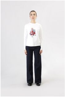 Regular fit t-shirt with long sleeves made of stretch cotton jersey. the multi-technical print reproduces a stylized new york.