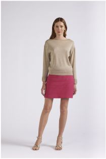 Sweater with boat neckline and long sleeves. made of viscose-blend yarn with lurex.