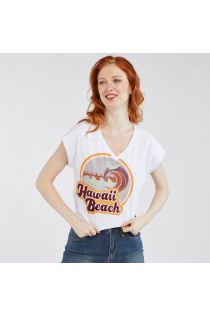 Sea, surf and the desire for summer are all enclosed in this elasticated cotton jersey T-shirt with a mix of print techniques applied on the front.