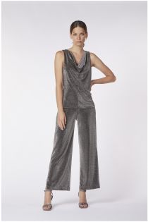 Sleeveless drop-neck wide-shoulder top made of an exclusive lurex fabric. suitable for making your summer evenings special.