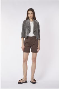 Short shawl collar bolero with 3/4 sleeve made of an exclusive lurex fabric. suitable for making your summer evenings special.