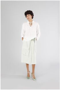 3/4 sleeve blouse with bow collar. made of viscose marocaine. comfort fit. perfect to combine with a pair of trousers or a skirt.
