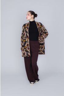 Maxi cardigan with belt and floral jacquard knit. Comfortable fit and warm, enveloping yarn, perfect for elegant casual looks. The model is 172 cm tall and wears a size S.