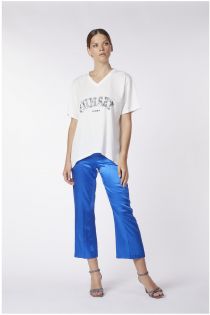Maxy t-shirt in 100% cotton jersey with eye-catching 'sunset' sequin lettering.