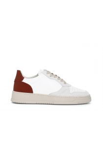 men's laced leather sneakers white/red