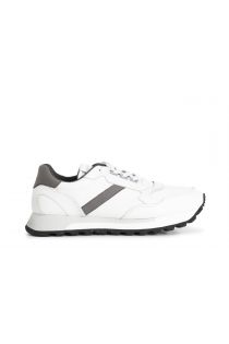 Men's lace-up sneakers in coated leather. the insole is in leather. multicolor rubber sole. this shoe guarantees comfort and support while walking the model soberly combines comfort and style.