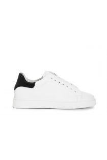 Men's lace-up leather sneakers. lining and insole are in leather. shoe with a rounded shape.