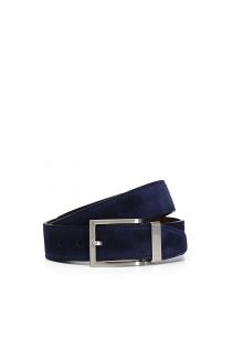 men’s reversible belt in calfskin and suede blue/dark brown