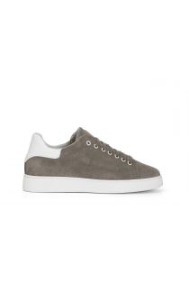 Men's lace-up sneakers in suede and leather. lining and insole are in leather. shoe with a rounded shape.
