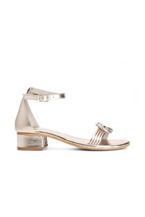 Metallic leather sandals with knot. reinforced heel on the back. ankle strap.