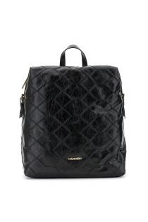 metallic leather effect backpack black