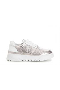 Metallic leather sneakers with embossed side monogram light box sole. rounded and dynamic modelling.
