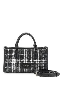 Mini bag in Scottish fabric with all-over sequins, faux leather details and handles, front plaque with café logo and removable shoulder strap for a touch of glam.