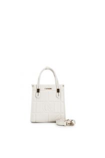 mini tote with embossed, quilted effect in a geometrical pattern. cream