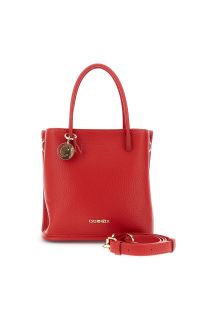 Mini faux leather tote with tubular handles and tone-on-tone metal details. Removable logo lettering charm and compact size for bold looks.