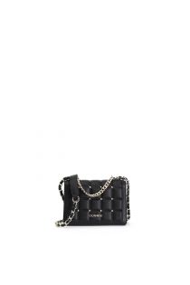 Mini bag with long flap check quilting embellished with small pyramid studs at the corners. chain handle and shoulder strap with threading.