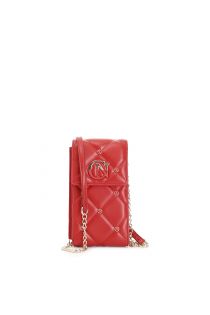 mobile phone holder with flap with colored rivet application and two-tone logo red